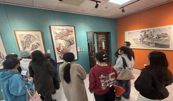 11 月 25 日中午 12:30,青马社全体社员准时集结于湖艺美术馆(博艺楼 6 楼),在轻松融洽的氛围中开启了一场艺术与思想交融的探索之旅。走进美术馆,大家驻足于一幅幅兼具艺术张力与时代气息的作品前,认真聆听作品背景介绍,细致品味创作手法中的巧思,热烈交流各自对艺术表达与时代精神的理解 —— 从红色主题创作中感悟革命先辈的理想信念,从现实题材作品里体会当下社会的发展脉动,让马克思主义理论与艺术实践实现了生动碰撞。